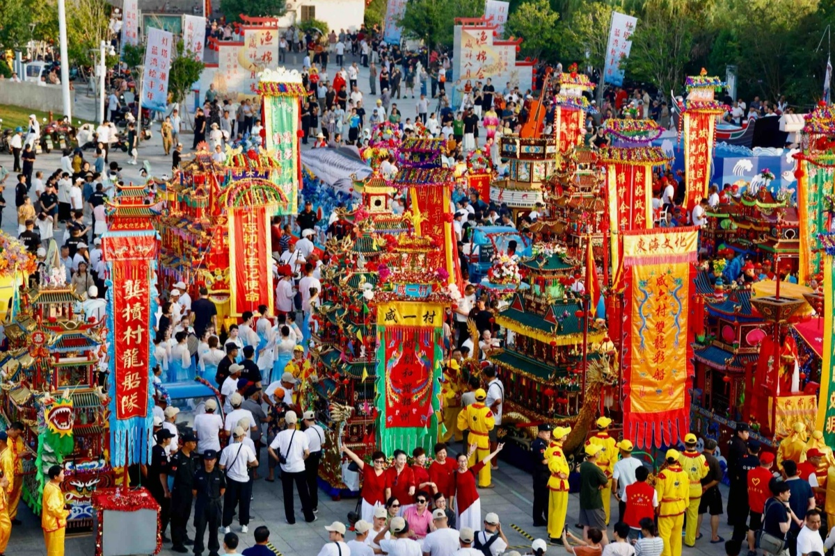 巡游队伍中,一艘艘雕刻精细、绘着各式图案的彩船很是瞩目。“这次的队伍里有十多艘彩船,有龙船、凤船,还有马友友大提琴主题的,每次民俗巡游都会更新一些,彩船展示喜庆和热闹元素,来看的人也更多了。”彩船制作技艺非遗传承人朱军良说,看到自己做的彩船在村里巡游,被大家都喜欢,那种成就感是无法形容的。