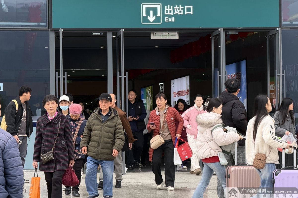 2月12日,几百名在越南务工的我国游子迎着小雨,连续抵达凭祥东站进站口;从五湖四海回凭祥新年的游子,则从出站口走出。每一个仓促的身影,每一件沉甸甸的行囊,都朝着家的方向。